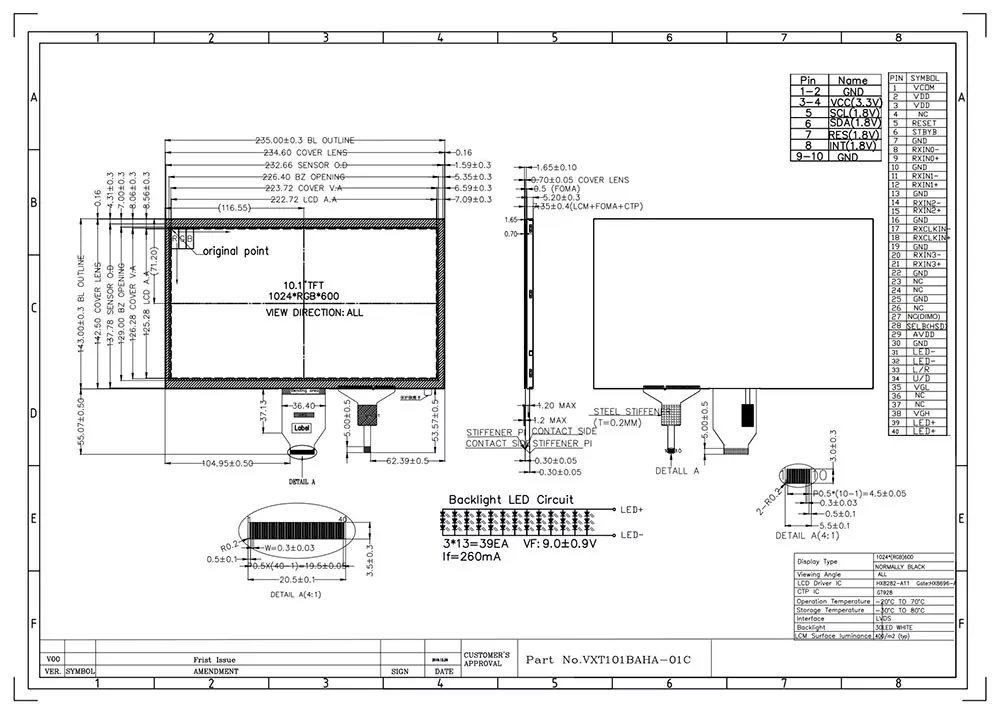 TFT LCD is een type vloeibare kristalweergave dat gebruik maakt van dunne-film transistortechnologie om de beeldkwaliteit te verbeteren, en het heeft talloze toepassingen in het dagelijks leven. Wat maakt de Victronix 10,1 inch 1024 × 600 IPS TFT -module met CTP als een professionele TFT -module -fabrikant en leverancier in China anders anders dan andere fabrikanten? Ten eerste biedt het een typische helderheid van 420 CD/m², brede 80 ° kijkhoeken in alle richtingen en een contrastverhouding van 800: 1, waardoor uitstekende leesbaarheid vanuit verschillende invalshoeken zorgt. Ten tweede integreert het een achtergrondverlichtingseenheid met 39 witte LED's met een typische levensduur van 30.000 tot 50.000 uur (tot 50% initiële helderheid), waardoor een duidelijk zicht in alle verlichtingsomstandigheden wordt gewaarborgd. Bovendien ondersteunt het een 6/8 bit LVDS-interface met HX8282A11+HX8696A-controller en een robuust 5-punts capacitief aanraakpaneel met GT928 CTP-controller. Bovendien passeert het rigoureuze omgevingstests, inclusief thermische schok (-30 ° C ↔ +80 ° C-cycli), opslag van vochtigheid (60 ° C/90% RH) en mechanische vibratie, waardoor het naadloos kan werken over een verlengd temperatuurbereik (-20 ° C tot +70 ° C).