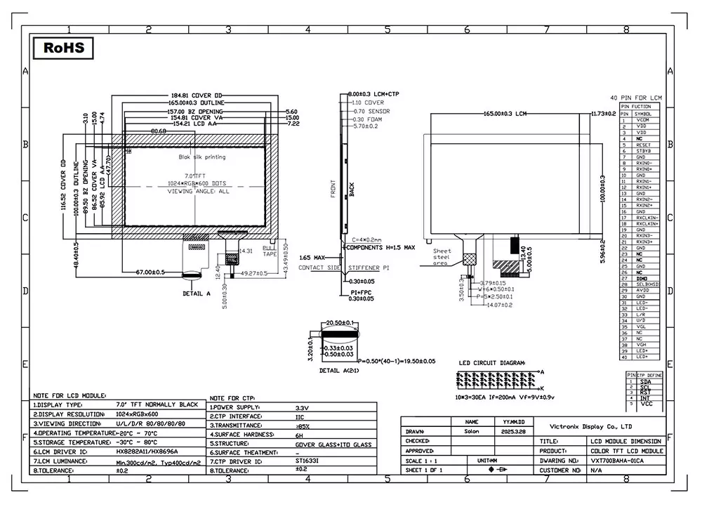 Victronix is een professionele TFT -modulefabrikant en leverancier gevestigd in China. Met 18 jaar ervaring op dit gebied hebben we verschillende modellen ontwikkeld. Naast onze standaardproducten bieden we ook aangepaste diensten om aan de specifieke behoeften van onze klanten te voldoen. Deze Victronix 7 inch 1024 × 600 lvds IPS TFT LCD is een robuuste 7 -inch TFT LCD -module ontworpen door Victorrix voor veeleisende industriële, ingebedde en commerciële toepassingen. Door levendige visuals, responsieve aanraakfunctionaliteit en betrouwbaarheid van industriële kwaliteit te combineren, levert deze module uitzonderlijke prestaties in diverse operationele omgevingen.